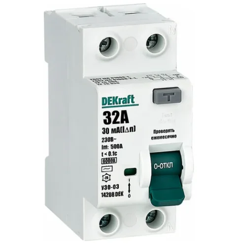 УЗО DEKraft 2P 32А 30мА тип AC 6кА