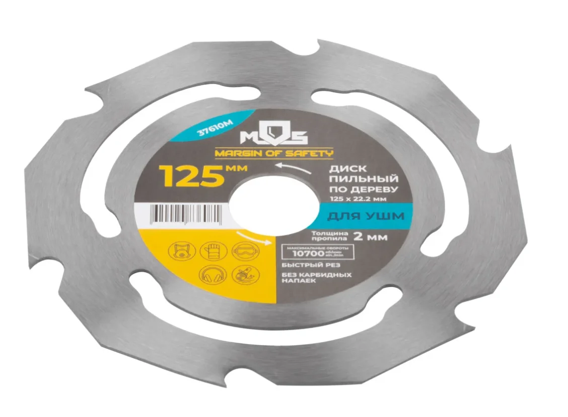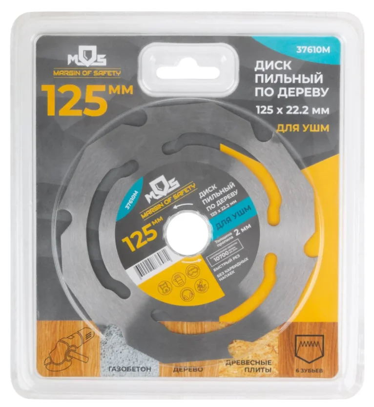 ОписаниеДиск пильный по дереву 125х22,2 мм, 6 зубьев MOS 37610М полностью закален.