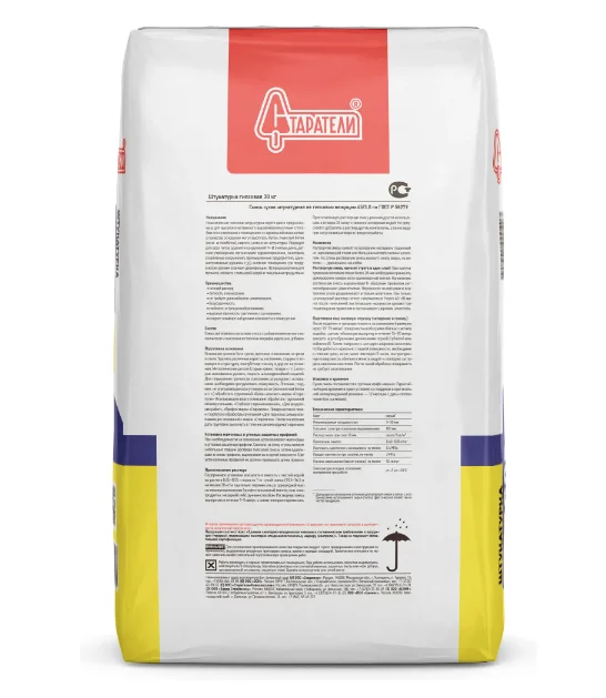 Максимальная толщина слоя, мм 50 Место использования Внутренний Бренд Старатели Серия Старт Основа Гипсовая Минимальная толщина слоя, мм 5 Тип Штукартурка Цвет Серый Тип применения Машинный, Ручной Фракция, мм 3 Штукатурка для ванной комнаты Нет Время высыхания 3-4 суток Штукатурка цементная влагостойкая Нет Фасадная штукатурка Нет Жизнеспособность раствора 20 мин Расход сухой смеси 12 кг/м2/10 мм Расход воды на мешок 18л Срок годности, мес: 6 Назначение Для кирпича, Для ячеистого бетона Вес 30 Страна производства Россия Температура применения +5 - +30 C -